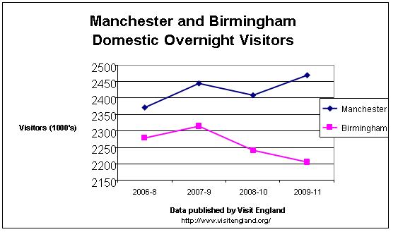 I have already posted on Birmingham’s failure to capture as many international visitors as Manchester