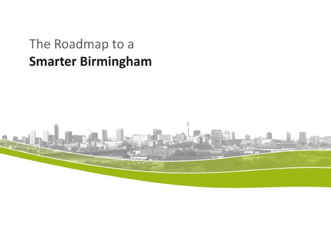 SmartBrumThis is confirmed when one looks at the SmartCity Roadmap here  This document, launched recently by Birmingham’s Smart City Commission ( a partnership body led by Birmingham City Council), aims to ensure that Birmingham maximises the impact of new digital technologies on the city. Given the scale of the changes internationally brought about by new technologies this is perhaps one of the most important strategy documents in the city.